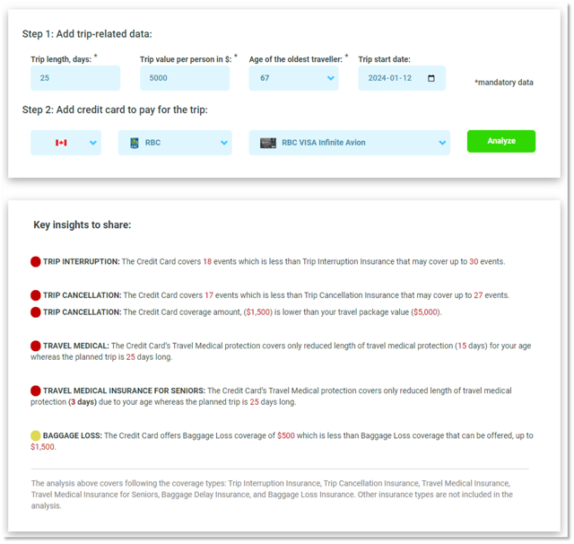 - Itemized comparison between credit card travel insurance and insurance policies from insurance providers